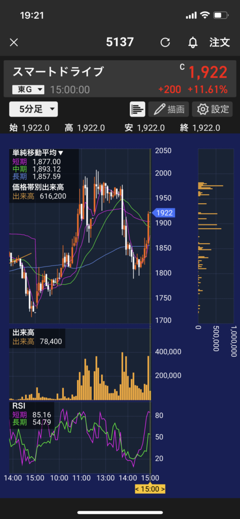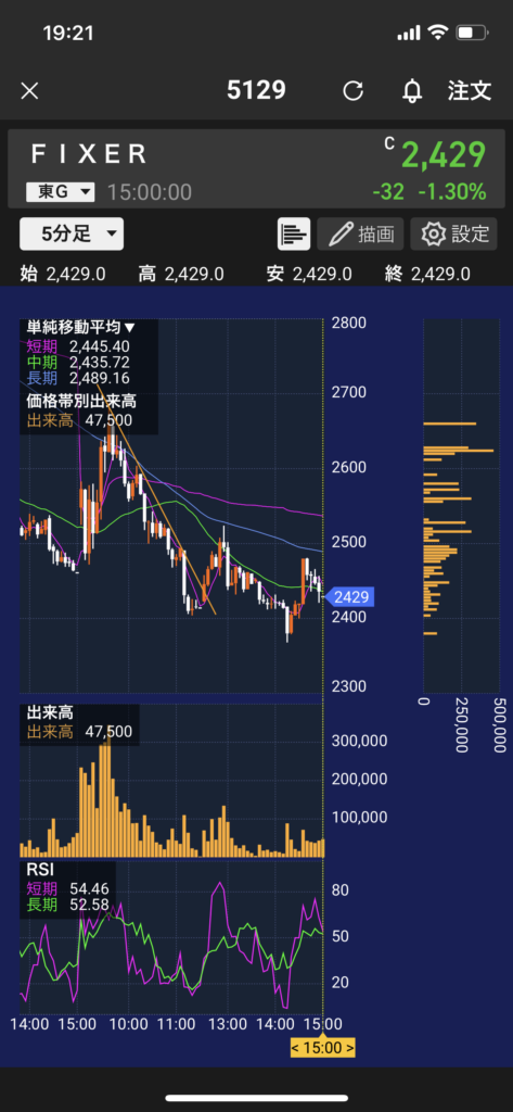 その後13時過ぎのガラでvwap反転を狙い勝ったが、突き抜けていったため損切り。